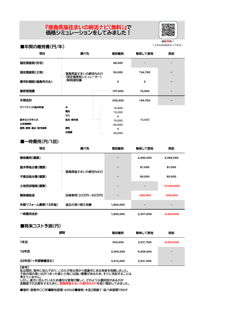 ■あなたの空き家の費用シミュレーション表