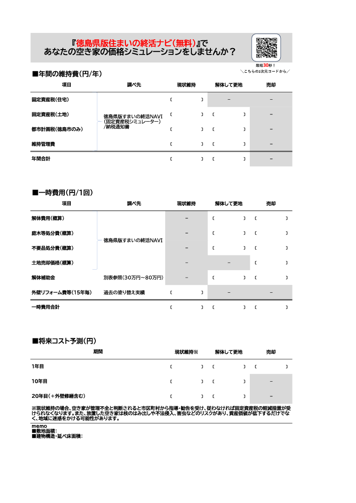 空き家の維持費や売却価格が無料でわかる!「徳島県版住まいの終活ナビ」のご案内